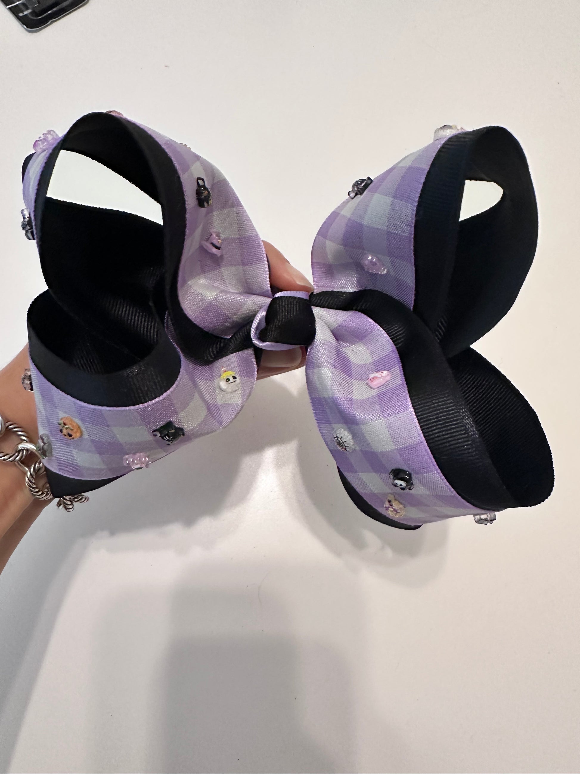 Halloween gingham spooky charm bow
