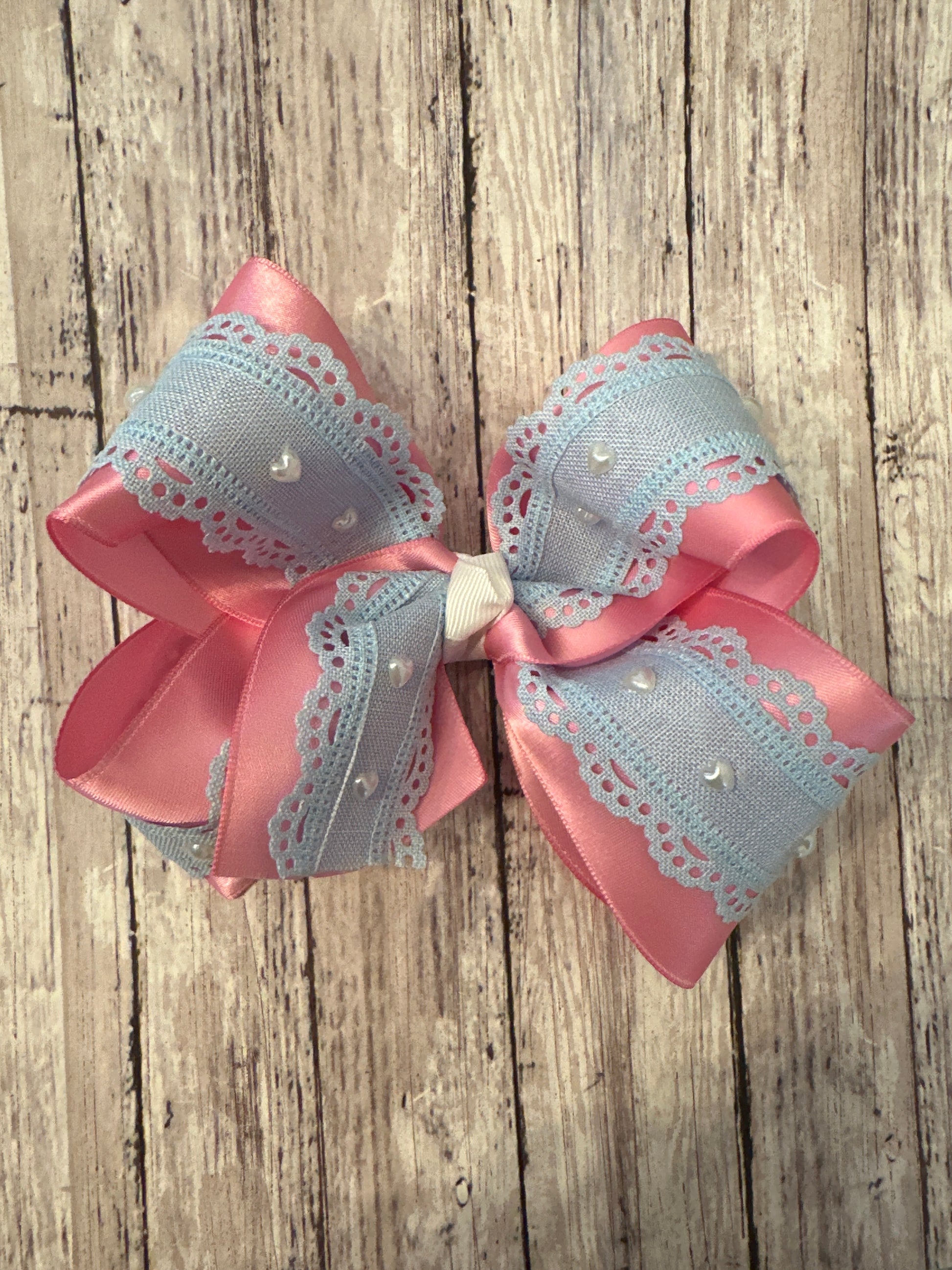 Pink and Blue Lace with Pearl Hearts